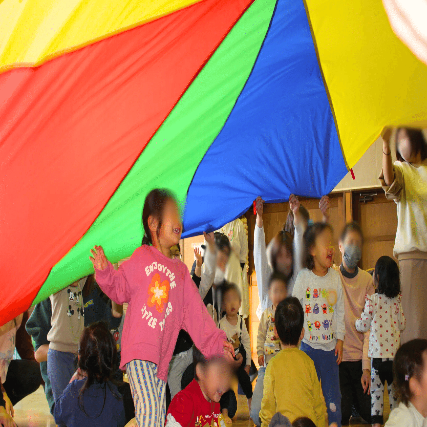 イベントの後半では、「たかいたか~い!」をおねだりしたり、リズムに合わせて動くパラバルーンの中に入って楽しみました🥰